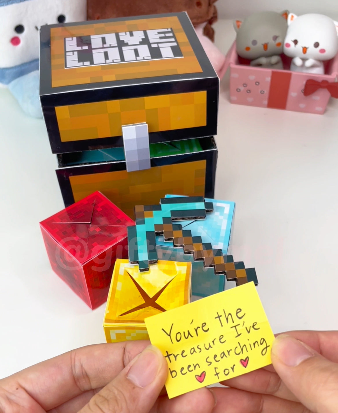 Super cute gift for the Minecraft lover with lots of gems! Break some gems to find cute notes! Happy gifting!