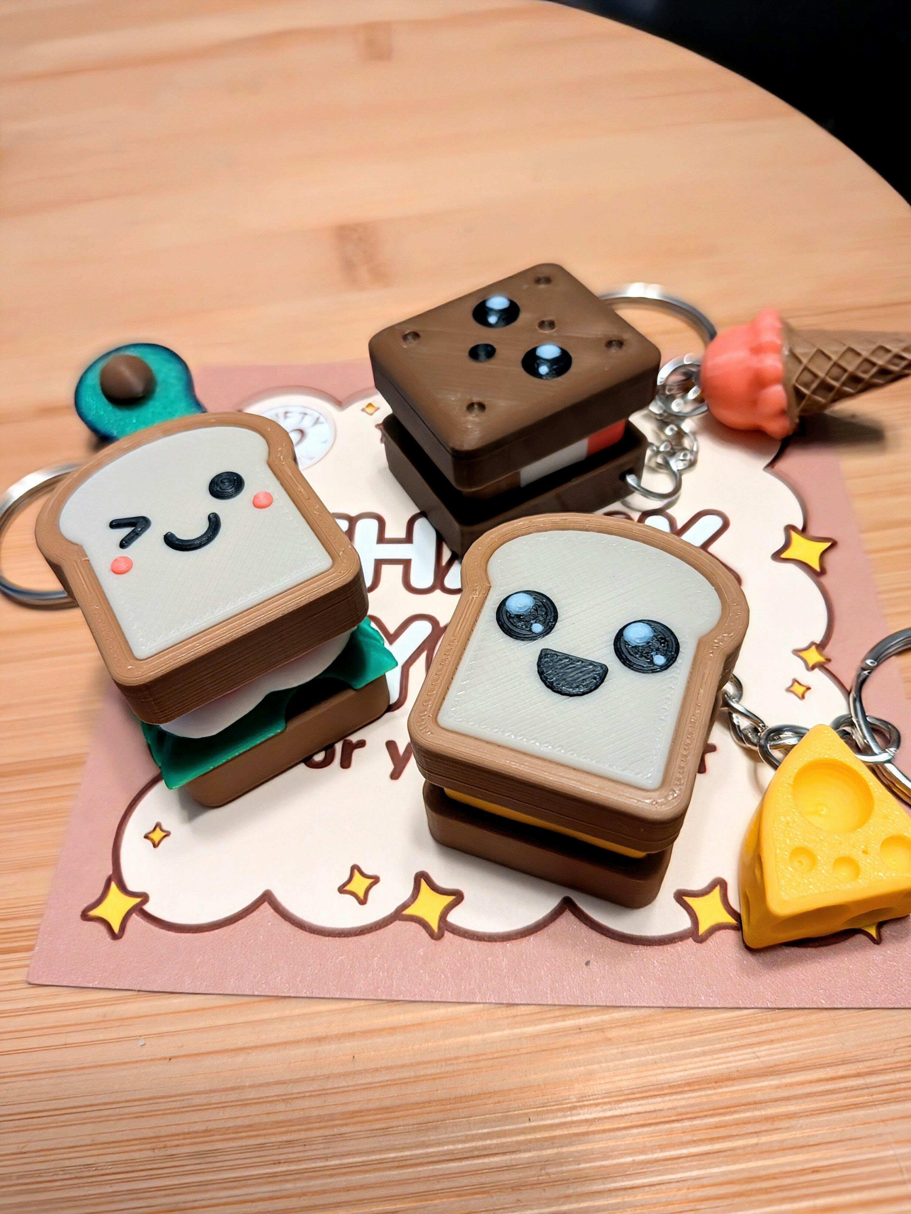 A lineup of mini sandwich fidgets with big personalities! Each blind box includes one Sandwich Clicker Keychain with its own matching charm and unique vibe. Some are melty, some are jammy, and one’s a total mystery hiding in the mix. Every design is self-designed and unique to Gifty by Mel, created from scratch with care and detail.